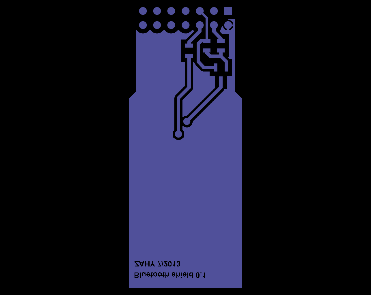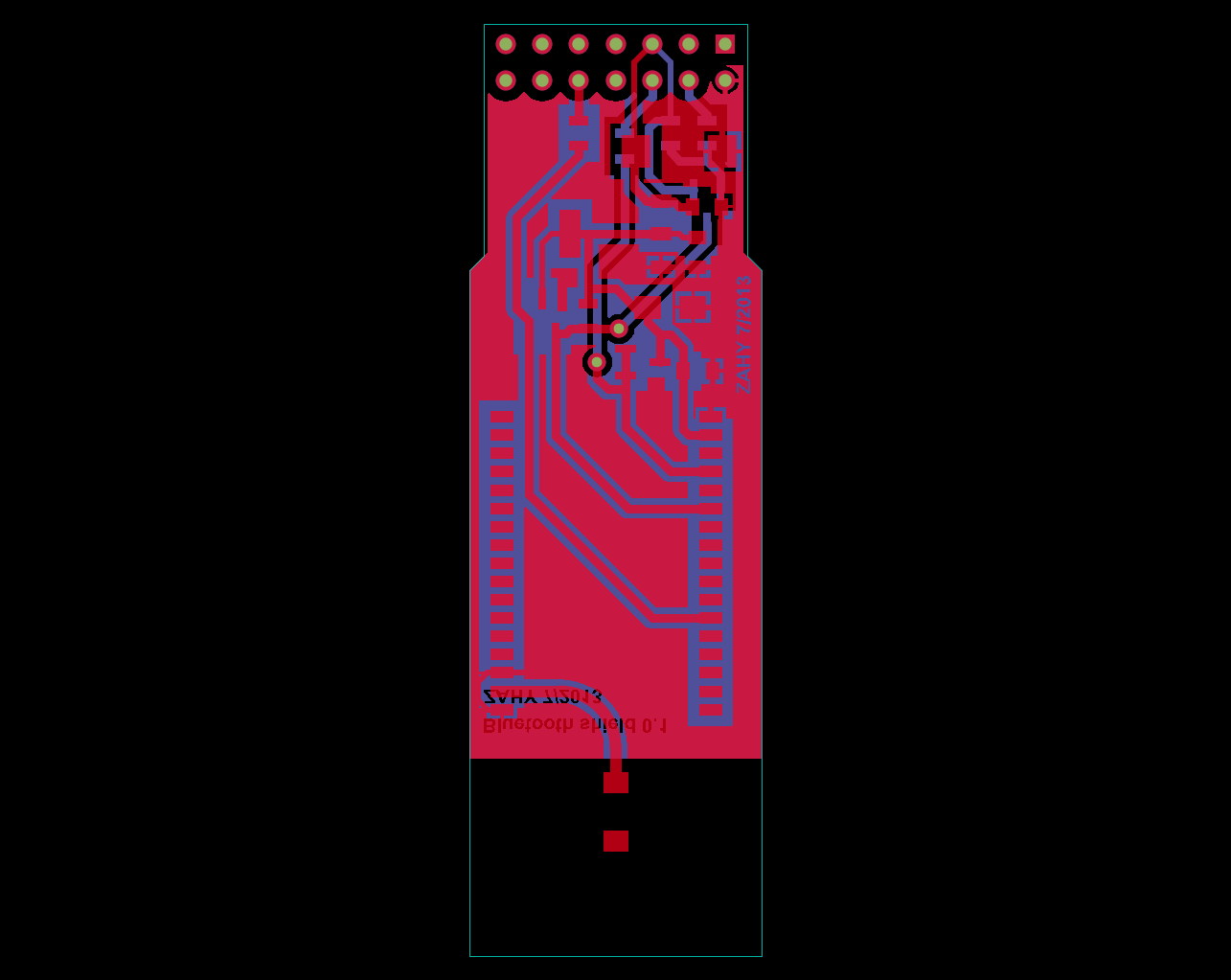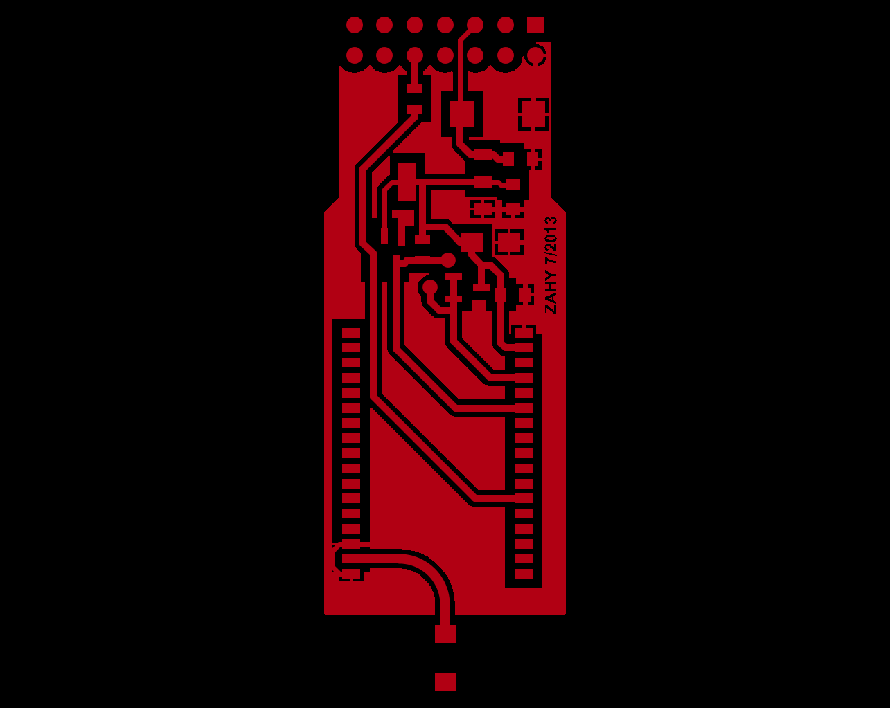 Jedná se o vrstvy které definují samotný plošný spoj. V případě jednostranné desky navrhujte plošný spoj ve vrstvě BOTTOM. Dodržujte izolační vzdálenosti 0.3 mm nebo 0.9 mm. Na obrázkách si můžete všimnout správně rozlité mědi, včetně ostrůvků (death cooper). V dolní části tohoto příkladu je bezpodmínečně nutné měď nerozlévat, protože se jedná o bezprostřední okolí antény. Tedy toto zdůvodnění napíšu do emailu. Všimněte si textu v obou vrstvách.